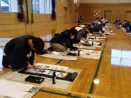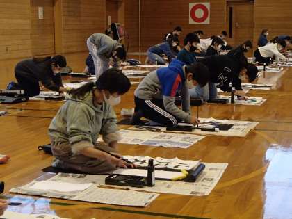 書き初め大会では、真剣な表情で一画一画、お手本を見ながらていねいに書くことを心がけていました。のびのびした力強い字に仕上がっており、うまくなったなあと感心しました。