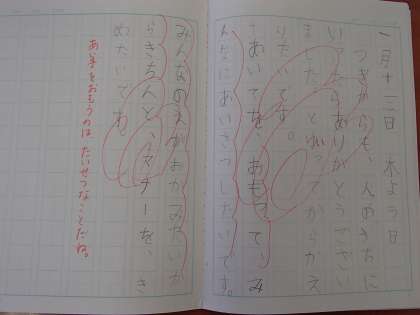 今日の道徳は、お互いに気持ちよく生活するには、どうするとよいのかについて、みんなで考え話し合いました。資料文「だいじな わすれもの」を読み、「ごちそうさま」を言いにもどった主人公から、相手を大切に思う心を学びました。振り返りでは、自分は今までそうではなかったけれど、今度からは、主人公のようになりたいなど、書いていました。