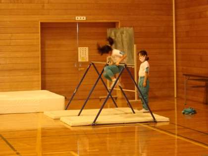 今日の「君がスターだ!きらきら集会」では、3年生から、鉄棒と跳び前転を披露しました。
