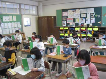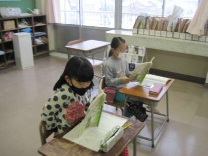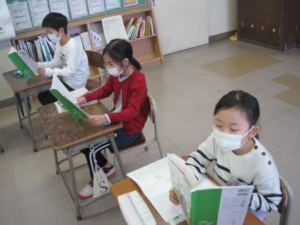 国語科では説明文を使って学習を進めています。写真は文章を見て、何について書かれているのか考えたり、自分の知りたいことを見つけたりしている様子です。明日からもまたがんばろう!