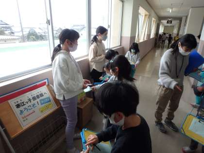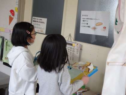 「どこにクイズがあった?」「正解は何かな?」と友達に聞きながら楽しくクイズラリーに参加してくれました。すこやか委員会の子も、楽しんでもらえてうれしかったようです。
