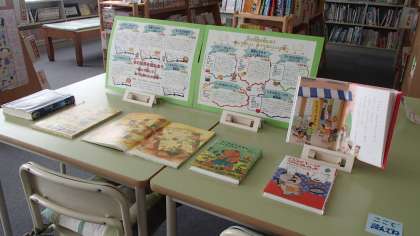 「本を楽しく、給食をよりおいしく、本の世界を味わえる週間」になればと、図書室に来週の給食の献立になっている本を準備しました。