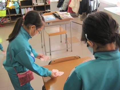 今週は、生活科でステキカードの交換をしたり、自分の名前の由来を発表したりするなど、「わたしたんけん」を頑張りました。これからもっと自分について知っていきたいと思います。また、算数科では長さの勉強を頑張りました。写真は、自分の「ひろ」を友達にはかってもらっている様子です。今週も元気いっぱい活動できました。来週もがんばろうー!
