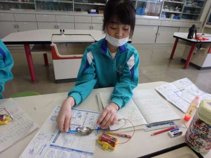 「予想通り、〇〇は電気がついたよ」「予想と違って△△は電気がつかなかったな」などつぶやきながら実験していました。結果はお子さんにぜひ聞いてください。