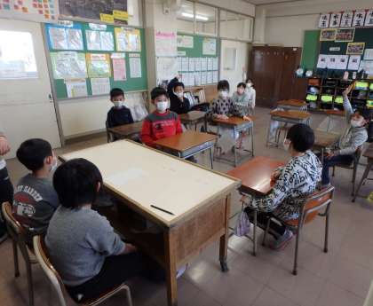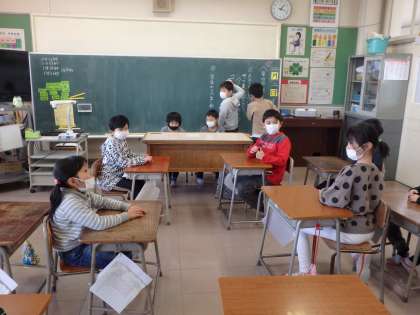 卒業お祝い週間のスローガンに入れたい言葉について学級で話し合いました。