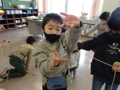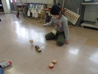 生活科では、「むかしのあそび」を学習しています。おうちから持ってきたこまや、けん玉、あやとりなどをしたり、学校にあるベイゴマやだるまおとし、ヨーヨーなどで遊んでみたりしました。うまくできると「先生〜見て〜」など、楽しそうに遊んでいました。いろいろな遊びを体験していきたいと思います。