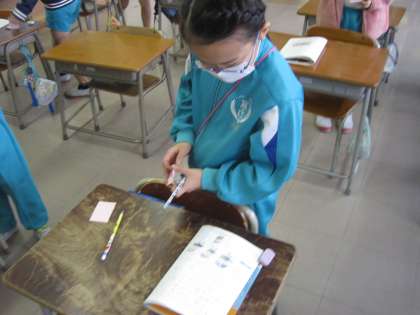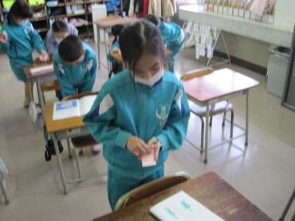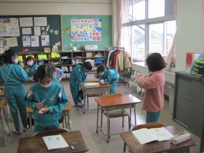 今日は自分で作った詩を読み合って感想を伝え合いました。写真はふせんを使って感想を友達に伝えている様子です。友達のよい所を見つけることができたかな?