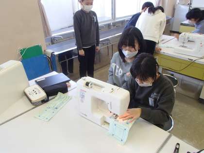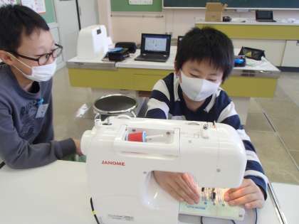 5年生の家庭科の学習では、ミシンを使う学習をしています。今日は久々の家庭科の時間になりましたが、ミシン練習布を使用してミシンを使用しました。基本的な縫い方で縫うだけではなく、練習布に印刷してあるコースターの線に沿って、最終的にコースターづくりをしました。