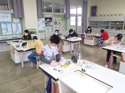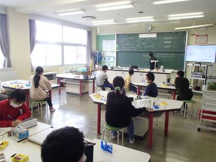 今日の理科の学習では、自分でつくった実験装置を使用して、電磁石にも磁石のようにN極やS極はあるのかについて、実験をしていました。