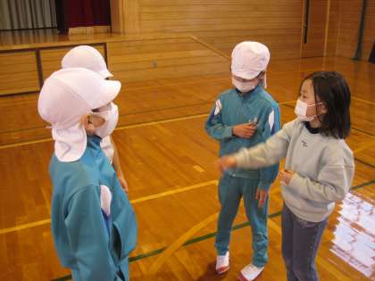 体育では、パラリンピックで行われたゴールボールに一工夫入れて取り組んでいます。その名も「トリプルゴールボール」!点数を取ったり取られたりしないように色団ごとに作戦を考えて活動しています。今日は白団が強かったですが次回はどの団が勝つのでしょうか。いろいろな作戦を考えてほしいと思います。