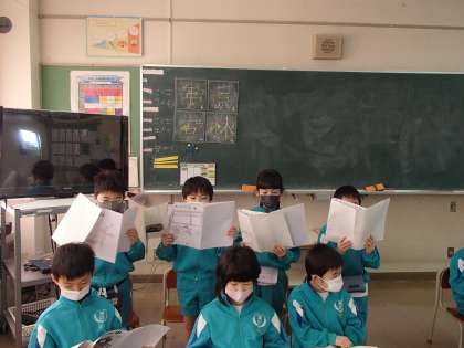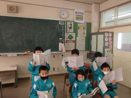 生活科では、1年生のまとめとして発表会をします。毎日、発表に向けて練習をがんばっている子供たちです。