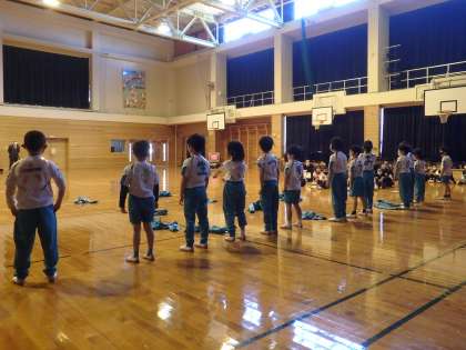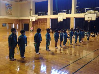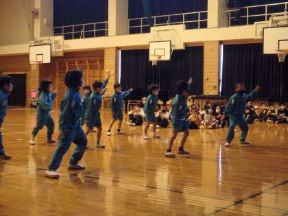 卒業する6年生に今までの感謝の気持ちを込めて、5年生が「卒業を祝う会」を開いてくれました。1年生の子供たちは、今までたくさんお世話になった6年生に、「ありがとう」のメダルをプレゼントしました。また6年生に元気を届けようと、体育で学習したダンスを発表しました。みんな力いっぱい、かけ声とダンスをがんばりました。みんなの「元気」がきっと伝わったことでしょう!