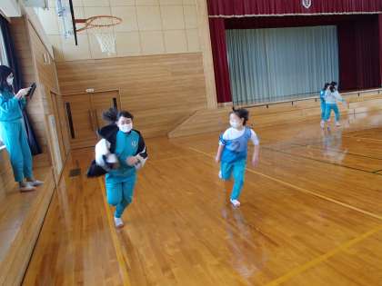 今日のなかよしタイムは、6年生が企画してくれた「ふれあい活動」がありました。1年生の子供たちの希望で、6年生と「こおりおに」をしました。1年生の子がおにになって、足が速いお兄さんお姉さんを一生懸命、追いかけていました。