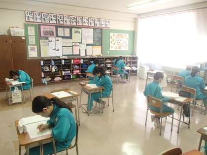 5年生の学習はほぼ終わり、来年度に向けて準備をする期間になっています。4月に行う全国学力調査に向けて、問題にチャレンジしています。難しいと感じる人が多いですが、振り返ってみれば、どれも学習してきたことばかりです。やはり、復習しないと忘れてしまうものなので、残りの期間、復習する時間をとり、来年度に向けての自信をつけてほしいと思います。