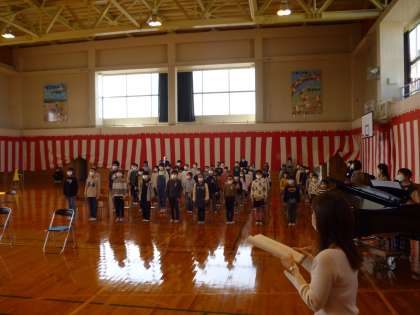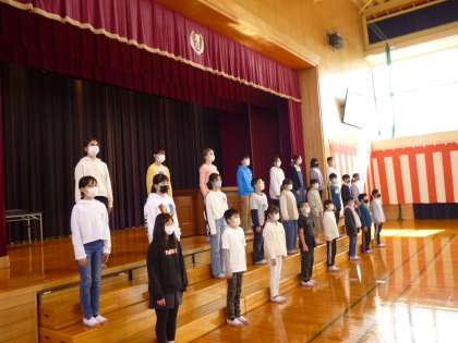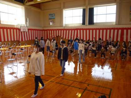 卒業式がいよいよあさってに近付いてきました。今日は初めて全校で練習しましたが、卒業生も在校生も立派な態度で臨んでいました。一度だけの全体練習で本番を迎えることができるのは、さすが寒江っ子です。