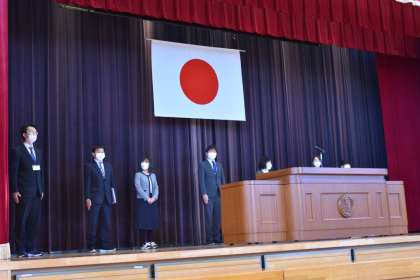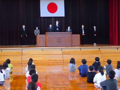 新しく寒江小学校においでになった7名の教職員の方々の紹介がありました。子供たちは、しっかりと「よろしくお願いします」の挨拶をしていました。新しく来られた先生方からも寒江っ子の挨拶をほめていただきました。