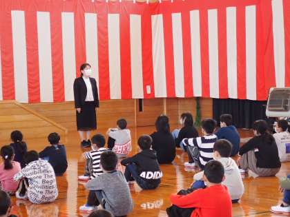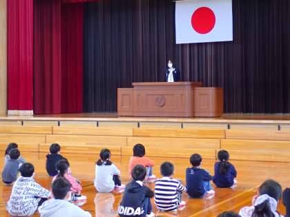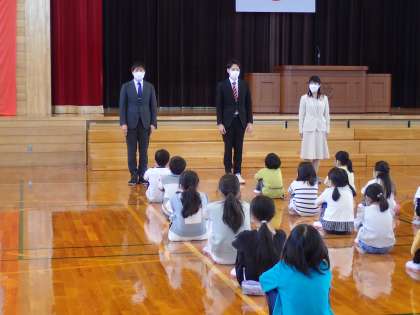校長先生のお話の後、担任の先生の発表がありました。新しい担任の先生と一年間がんばりましょう。よろしくお願いします。