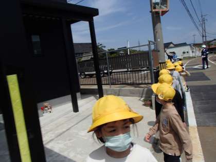 その後実際に道路を歩き、道路横断時の左右確認や歩き方について実践しました。