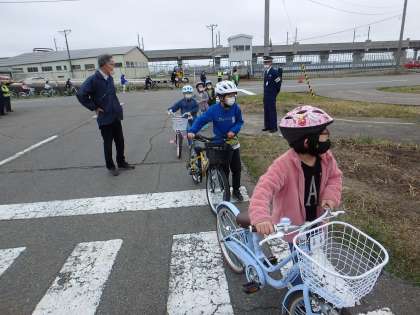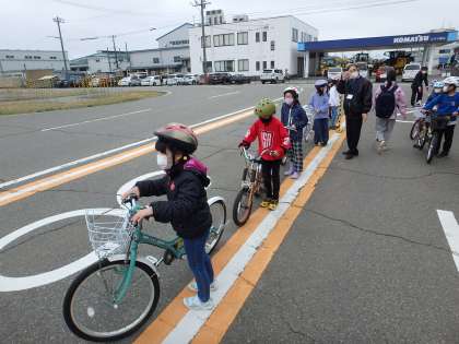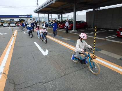今日の自転車教室では、本当の道そっくりの自動車学校のコースに、初めは緊張している様子の子供たちでしたが、交通安全に気をつけて練習することができました。自転車教室後には、「今日から道で乗れる!」と嬉しそうな子供たちでした。