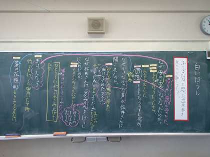 国語では、「白いぼうし」を学習しています。今日は、物語を読んで不思議だなと思ったところを、友達と話し合いました。