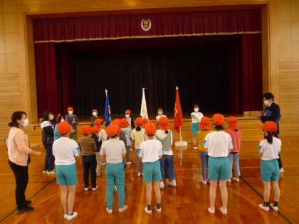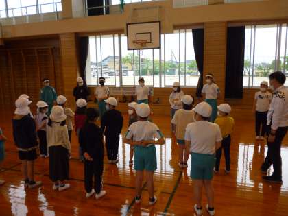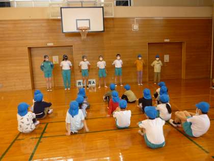 結団式がありました。各団の団長に団旗が手渡され、団役員や先生方の紹介がありました。続いて運動会に向けての初めての応援練習がありました。