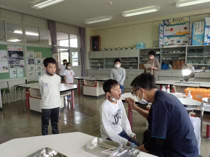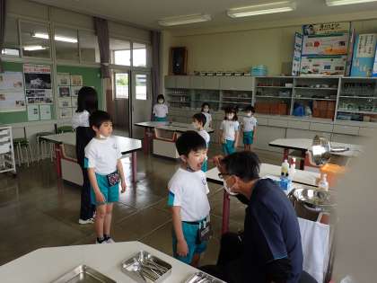 昨日午後、歯科検診を実施しました。今年も、マスクを正しく付け、間を空けて静かに並んで待つ姿がとても立派でした。