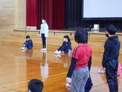 先週行われた児童会発足式では、すこやか委員会が「寒江っ子の元気」のために、委員会活動をがんばることを全校に伝えました。