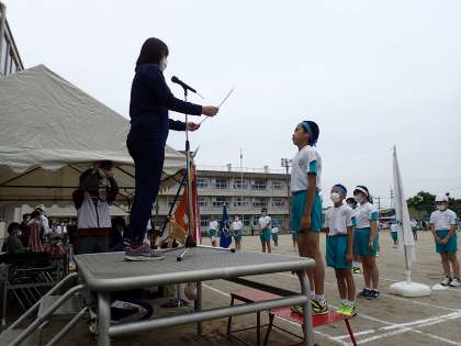 競技終了後、閉会式を行いました。「目指せ優勝!一致団結 全力つくして突き進め」のスローガンの下、どの子も一生懸命に参加することができました。