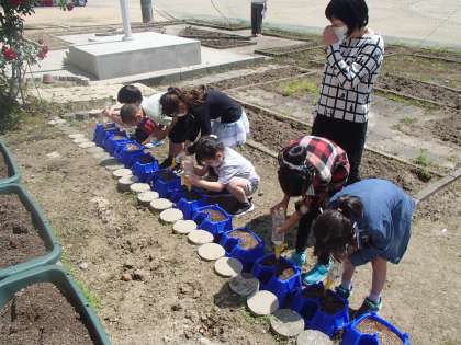 なかよしタイムには、みんなでアサガオの水やりをしました。まだ、鉢の様子は何も変わっていませんが、子供たちは毎日の観察を楽しみにしています。