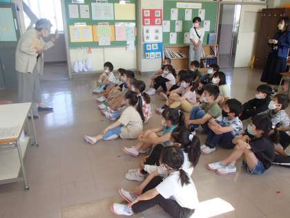 今日は地域の教育ボランティアの方による読み聞かせがありました。長野県に伝わる昔話を読んでいただきました。とても魅力的な反物が出てきました。