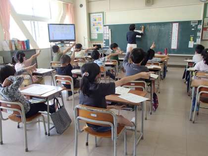 書写の時間には、みんなで空書きをしながら書き順を確かめています。みんなの腕の動きがそろっていて、しっかり覚えていることがよく分かりました。