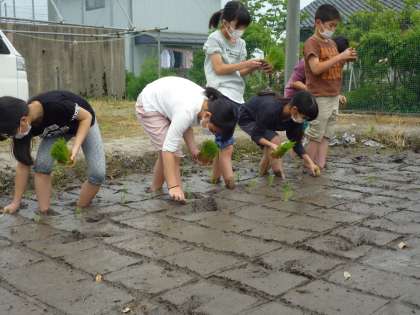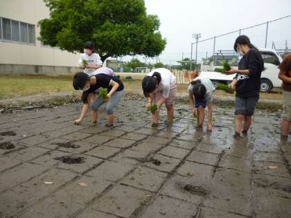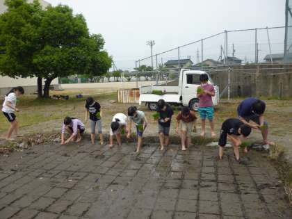 今日は田植えを行いました。一つ一つ思いを込めながら丁寧に植えました。