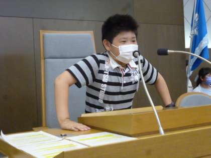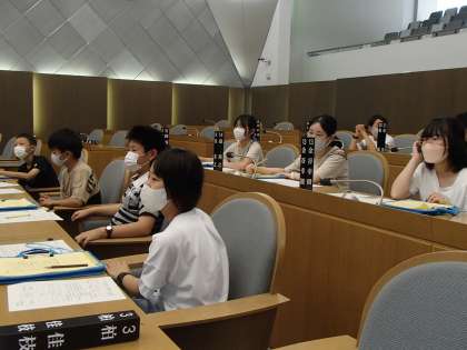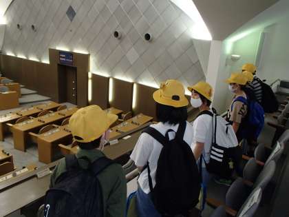 議長席や市議会議員席に座ったり、マイクを使って質疑応答を実際にしてみたりしました。