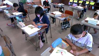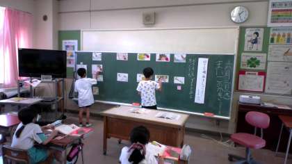 3年生の国語では、「まいごのかぎ」を読んで登場人物の気持ちの変化を考えたり、好きな場面を友達に紹介したりする学習をしています。今日は、自分の好きな場面とその理由を書いた付箋を黒板に貼り、友達と見合っていました。