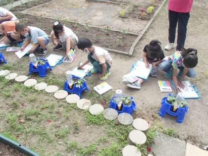 今日は生活科の時間に、アサガオの様子を観察しました。以前観察したときと様子はまた変わり、子供たちは本葉が出ていることや、葉の見た目や手触りが違うことにしっかりと気が付いていました。