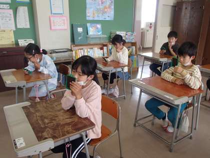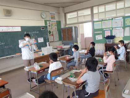 今日は、養護教諭の先生が、虫歯になるわけや歯ブラシの使い方について教えてくださいました。歯垢は食べ残しや虫歯菌によってできることや、4年生は歯の交換期であることを学びました。