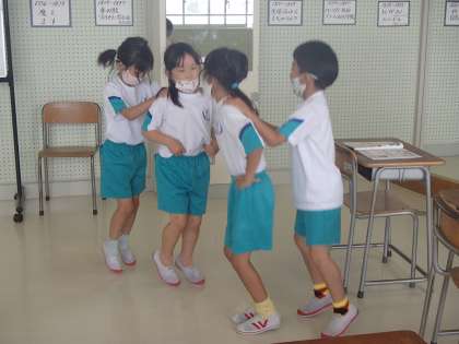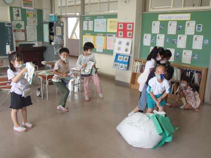 国語科「おおきな かぶ」の学習では、いろいろな役になり、音読や登場人物たちの動きを楽しみました。役は音読するたびに代わり、いろいろな役を経験しました。