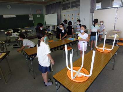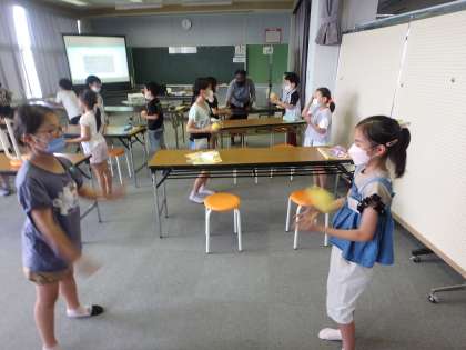 3年生の外国語活動の時間では、1から20までの数を学習しています。歌に合わせて数字を読んだり、玉入れをしながら数を数えるゲームをしたりしています。外国語活動の時間以外にも、英語で数を数えるなど楽しそうに学習をしています。