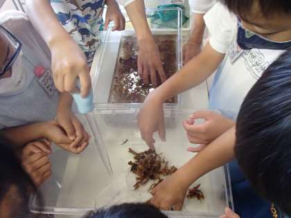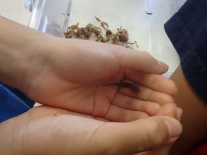 1ヶ月間、お世話を続けてきたホクリクサンショウウオが、ファミリーパークへ帰っていきました。自然にかえすためです。元気で育ってほしいです。