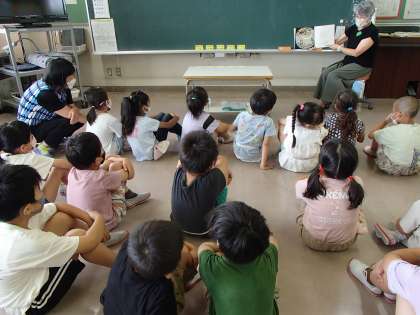 今日は、ボランティアの方の読み聞かせがありました。モンスターが出てくるお話を読んでいただきました。