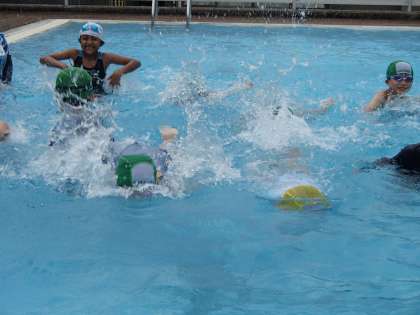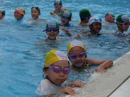 3限には、子供たちが大好きなプールに入りました。水が苦手な子供たちも少しずつ慣れてきたようで、顔をつけたり潜ったりすることに挑戦していました。