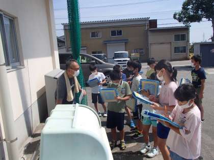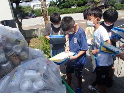 今日の社会は、学校ではどのようにごみを分別しているか、見学をしたり用務員さんや職員室の先生に質問したりしました。