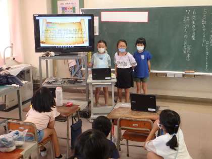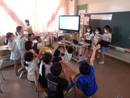今日はなかよし集会を開催しました。みんなが楽しめるような出し物を各係で考え、準備をしてきました。クイズや鬼ごっこ、ゲーム等いろんなアイディアがあり、子供たちもとても楽しそうでした。