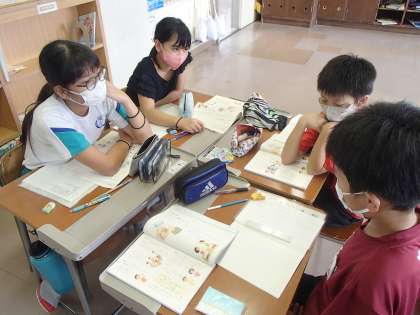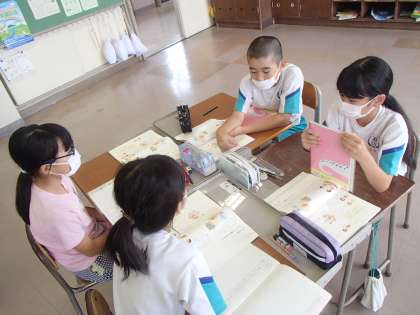 国語科では、話合いの練習をしました。自分の考えや根拠をしっかりともち、相手の意見に耳を傾けています。