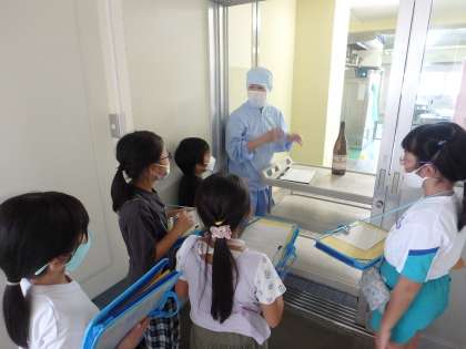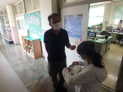 大豆の使い道を考える中で、大豆のことや料理のことに詳しそうな用務員さんや調理員さんにインタビューをしていました。