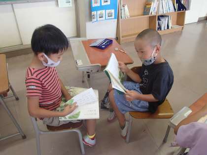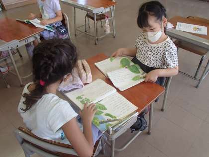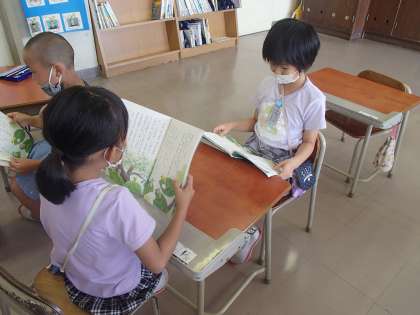 今日の国語の時間は登場するあおむしになりきって、「やくそく」の音読を行いました。ペアの友達と練習して、たくさん音読を楽しみました。