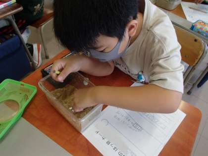 生きもののお世話を始めて三日目となり、日々の観察から、子供たちはいろいろなことを発見しています。