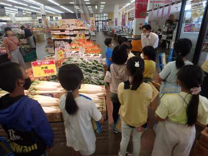 今日は、大阪屋ショップ呉羽店さんへ社会科見学へ行きました。普段見ることができないバックヤードでのお仕事を間近で見学させていただいたり、買い物体験をしたり、子供たちも大喜びでした。いつも何気なく買い物をしている、お店の秘密を知ることができ、とても充実した社会科見学になりました。