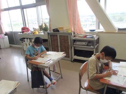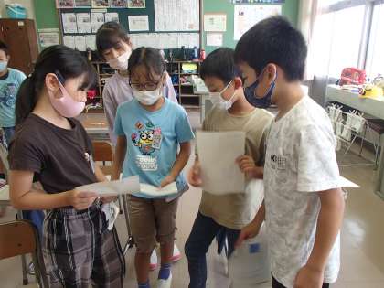 4年生の保健では、体の発育・発達について学習しています。1〜4年の身長の伸びを、一人一人計算してグラフに表すと、子供同士で自然に見せ合いながら、成長の違いについて話し合っていました。