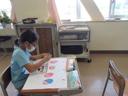 図工では、「わすれられない気持ち」を描いています。自分のいろいろな体験を思い出し、絵に表しています。